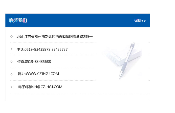 地址:常州市新北區(qū)友邦商務大廈1幢16、17層  電話:0519-85101652  傳真:0519-85112595  郵編:213022  網址:www.cz-jiayue_cn.szshdn.com  郵箱:xiajifengaa@163.com